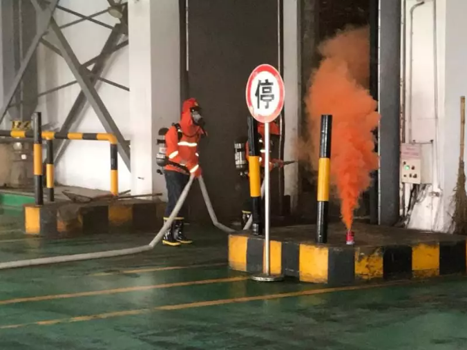 隨後,值長組織兩名運行人員著消防戰鬥服、正壓空呼器等進入預設火場撲滅火情。
