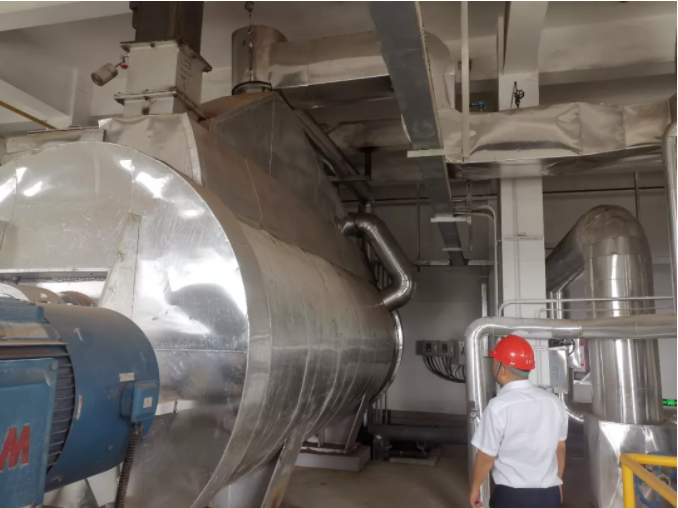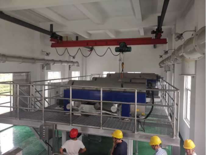 考察組在常州無錫國聯環保汙泥幹化機進料口