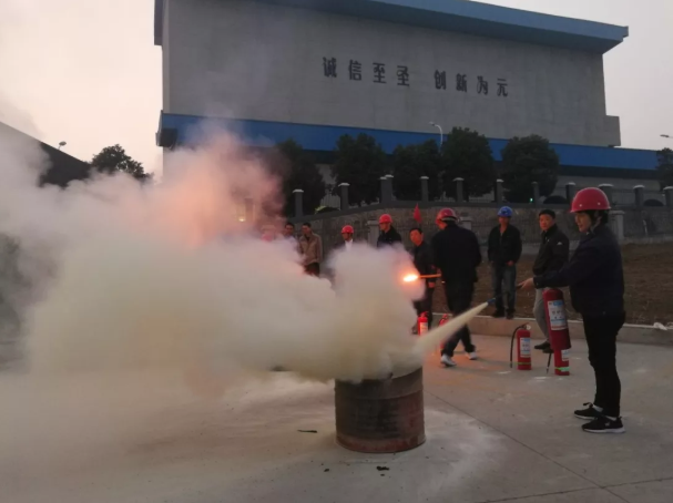 滅火演練中,陳教員演示滅火器正確使用方法、操作步驟和滅火姿勢後,指導員工以部門為單位輪流開展滅火演練。