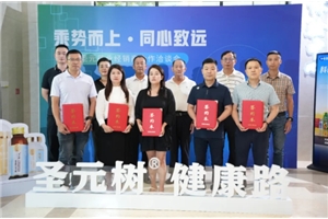 6月10日下午,以“乘勢而上·同心致遠”為主題的聖元藥業2025經銷商合作洽談會隆重啟幕。大會聚焦牛磺酸全生命周期健康領域核心戰略,現場福建、廣西、重慶、四川四大區域經銷商代表與聖元藥業完成重磅簽約,標誌著覆蓋全國重點市場的牛磺酸健康產品深度合作網絡全麵啟動。 聖元環保董事...