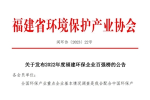 2022年度福建環保企業百強榜發布,聖元環保位列第三