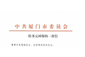 新年伊始,聖元環保就收到了廈門市委、市政府的新年祝福和誠摯問候。 來自廈門市委市政府的一封信 2020年,是新中國曆史上極不平凡的一年,是廈門發展殊為不易的一年,也是聖元環保迎難而上奮力拚博的一年。公司於2020年8月24日正式在深交所創業板掛牌上市,邁上了新的發...
