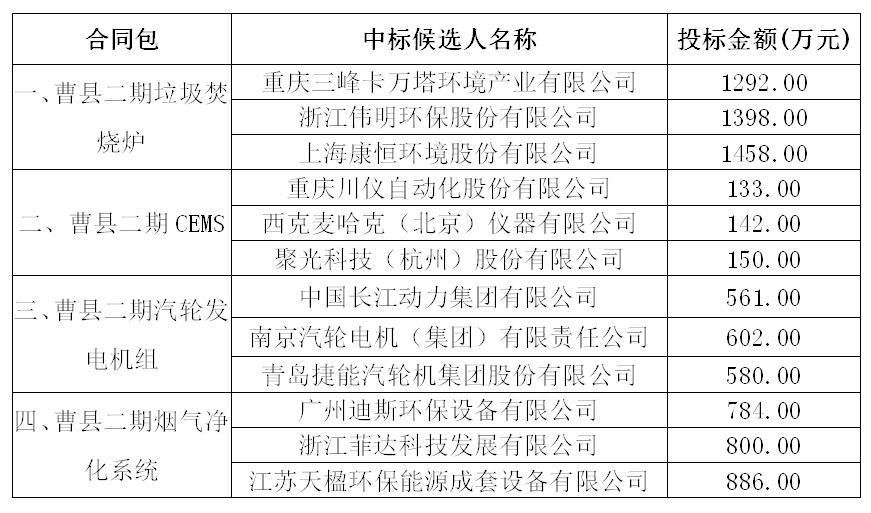 招標項目名稱:聖元環保曹縣生活垃圾焚燒發電廠二期工程垃圾焚燒爐、CEMS、汽輪發電機組、煙氣淨化係統采購項目