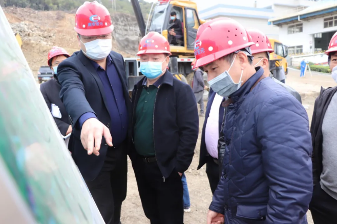 “疫情對工期進度影響大不大?”“項目什麼時候竣工?”“爆破藥量要嚴格控製。”“還在按規定隔離的返工人員有多少?”“目前在崗人員有多少?”王作彪副局長一行進廠便一步未停直奔項目現場,邊查看邊向項目總指揮王鐵軍詢問相關情況。
