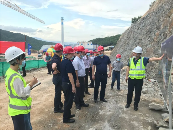 朱啟平副市長一行直奔施工現場,逐點逐項了解項目情況:“項目什麼時候可以投入使用?”“疫情影響的進度是否已搶回節點?”“設備質量尤為重要,生產過程中須及時跟進落實。”......聖元環保副總經理兼南安市垃圾焚燒發電廠提級改造工程項目總指揮汪雲保就施工進度、疫情管理及施工質量等情況一一做了彙報。