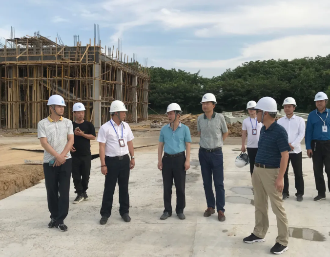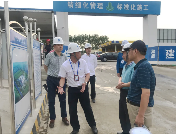 周副市長現場察看主廠區及綜合樓工地,官冬源總指揮就項目概況、建設進度及投產時間等做了彙報。周副市長對建設進度十分關切,對特有的聖元環保煙囪參觀走廊也很有興趣,囑咐緊盯工期、早日建成投產。