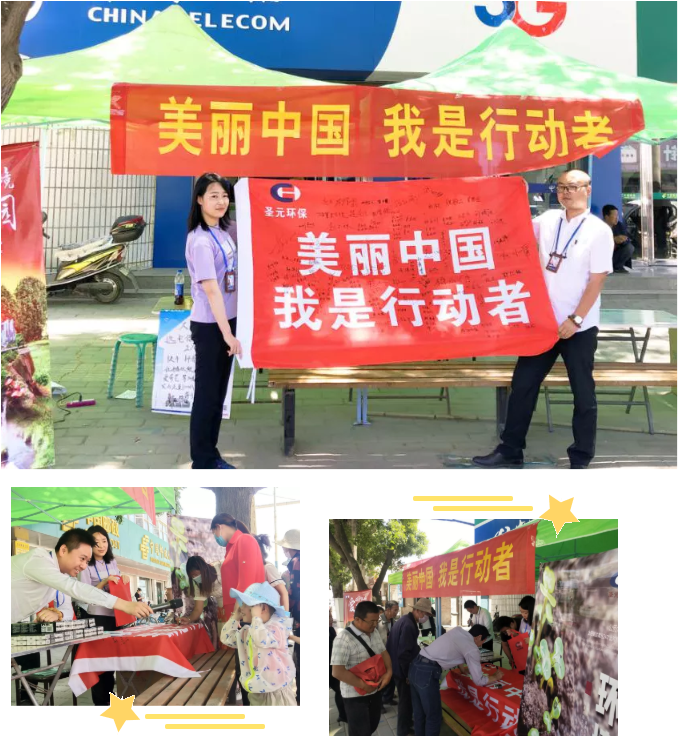 在肖金電信營業廳前,慶陽聖元以有責任、有擔當的環保企業形象,向民眾倡導:人人參與環境保護,樹立生態文明觀念,為共建環境友好型社會貢獻力量。同時引導民眾主動了解並參與環境保護工作。