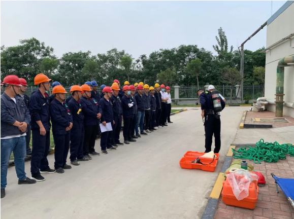 演練開始前,安環部專工胡晏銘培訓所有參演人員,講解演練規則、應急救援器材的使用方法,示範動作要領。