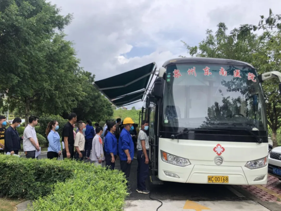 在人事行政部的聯絡協調下,泉州市東南醫院提供上門體檢服務,盡量保證員工工作、檢查兩不誤。