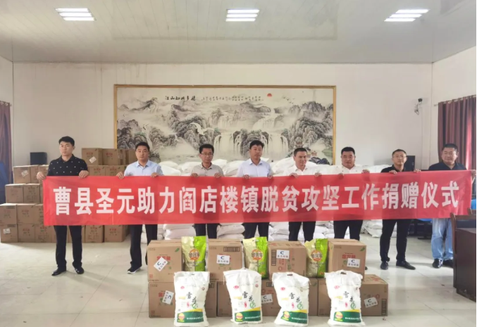 7月14日上午,“曹縣聖元助力閻店樓鎮脫貧攻堅工作”捐贈儀式召開。曹縣聖元帶著總部的囑托和員工的關愛,向當地困難群眾捐贈麵粉、大米、食用油等物資。