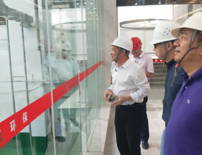 朱煜煊董事長一行巡查了新宿舍樓、垃圾通道、餐廚展廳、預處理車間中控室、提級煙囪、綜合樓、主廠房及卸料大廳等區域。