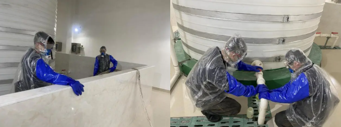 應急處置小組迅速趕赴現場:後勤保障人員疏散周邊人員至安全區,拉起警戒線對泄露車間進行隔離,嚴格限製出入;打開應急通風設施後,應急處置人員穿戴完備的防護器具進入現場處置泄露源,泄露源被切斷,泄漏藥劑被抽回次氯酸鈉儲存桶;處置完畢,用流動清水衝洗應急處置人員的防護器具,清洗水排至汙水井內。