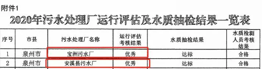 近日,福建省住建廳通報了2020年城鎮生活汙水處理廠運行評估考核情況,聖元環保寶洲汙水處理廠、安溪汙水處理廠分獲全省第一、第二名。這是寶洲汙水處理廠繼2010年、2015年全省年度考核第一名,2017年全省年度考核優秀後再創佳績。