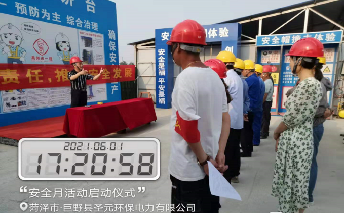 為紮實推進全國第20個“安全生產月”活動深入開展,全麵提升參建員工安全意識,積極營造“落實安全責任 推動安全發展”的濃厚氛圍,聖元環保巨野縣生活垃圾焚燒發電項目於6月1日舉行“安全生產月”活動啟動儀式。
