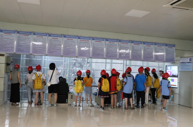 在宣講員的帶領下,小記者們先後參觀了南安市生活垃圾焚燒發電廠一、二期主廠房的汽輪發電機組、鍋爐車間、垃圾吊操作平台、中央控製室等生產區域。其中,小記者們最感興趣的要數垃圾吊操作平台。透過玻璃幕牆,看到巨大的垃圾抓鬥不斷地進行搬運、攪拌、鬆散和倒垛等操作,小記者們直呼“太厲害了!”與此同時,大家也打開了話匣子,拋出一係列問題:“這些垃圾是從哪裏運來的?”“我們怎麼聞不到臭味呢?”“垃圾焚燒會汙染環境嗎?”宣講員耐心地為大家一一解答。