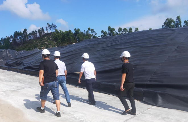 胡茂輝副局長一行實地察看垃圾吊操作室、固化飛灰填埋場、滲濾液處理站、危廢暫存庫、垃圾卸料大廳等處,全麵了解漳州聖元關於隱患排查治理、消防安全管理、應急管理、值班管理等方麵情況。