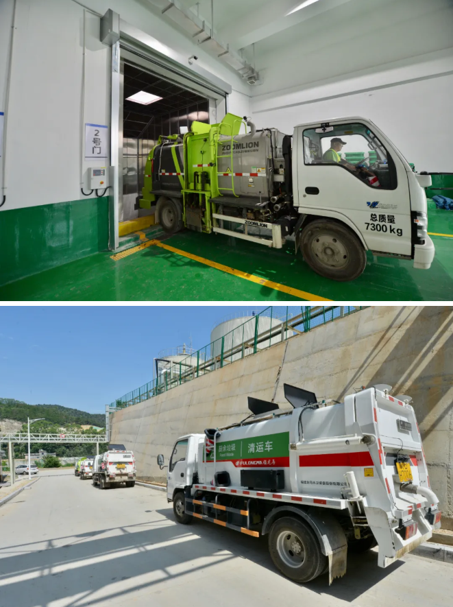 在餐廚垃圾收運上,配備了10輛餐廚垃圾專用車輛,同時配套收運專用係統,該係統配套了用戶專用芯片、車輛實時定位、車載監控、車載稱重、收運路線規劃等功能模塊,餐廚產生單位隻需要通過微信小程序即可申請餐廚垃圾收運處置。