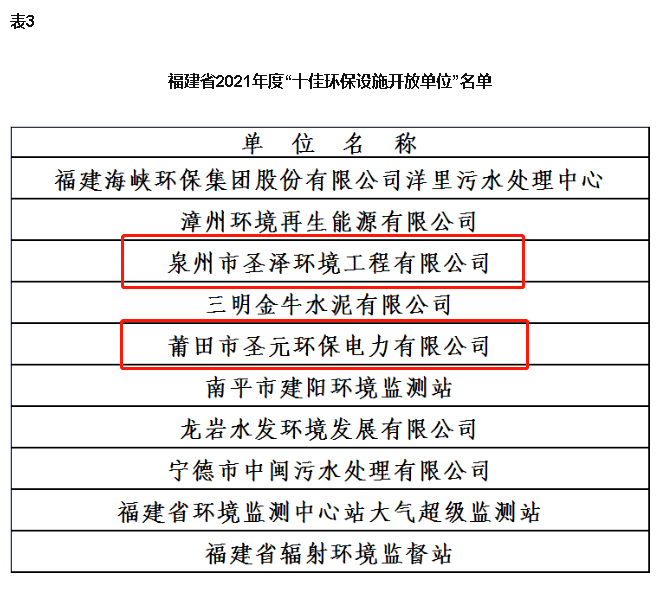 2021年7月,福建省生態環境廳、中共福建省委精神文明建設辦公室聯合發文,公布2021年度“‘美麗中國,我是行動者’提升公民生態文明意識行動計劃”先進典型名單。聖元環保旗下福建省境內的兩家子公司泉州市聖澤環境工程有限公司(簡稱“聖澤環境”)、莆田市聖元環保電力有限公司(簡稱“莆田聖元”)代表兩市光榮上榜。這也是莆田聖元繼入選國家生態環境部“2021年十佳環保設施開放單位”後收獲的又一榮譽。