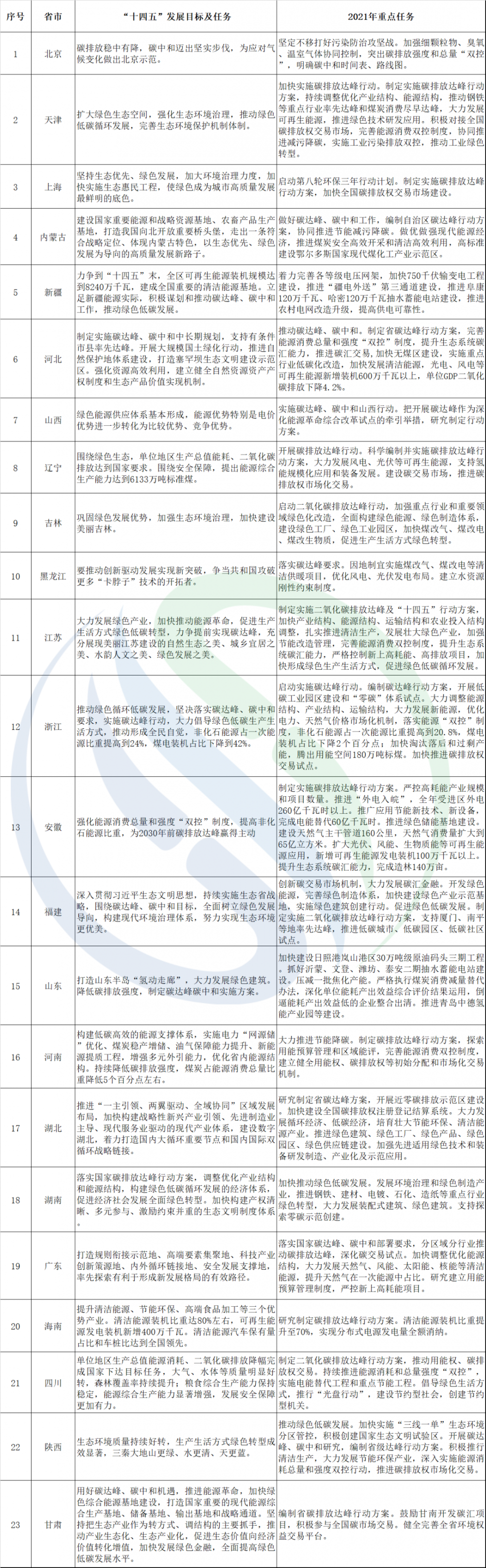 2020年底,《中共中央關於製定國民經濟和社會發展第十四個五年規劃和二〇三五年遠景目標的建議》明確指出:降低碳排放強度,支持有條件的地方率先達到碳排放峰值,製定2030年前碳排放達峰行動方案。