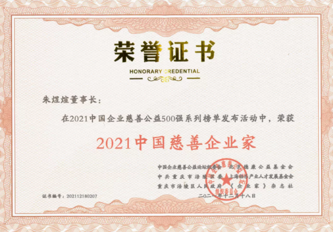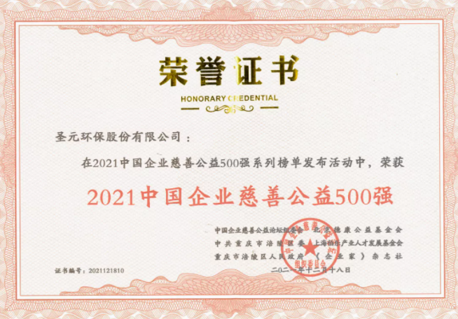 12月18日,“2021中國企業慈善公益500強發布暨第五屆中國企業慈善公益論壇”在重慶涪陵召開,論壇重磅發布了2021中國企業慈善公益500強係列榜單及分析報告。聖元環保股份有限公司榮登“2021中國企業慈善公益500強”,董事長朱煜煊先生榮獲“2021中國慈善企業家”稱號。