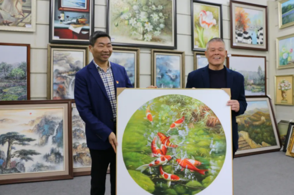 儀式結束後,領導們一同走進教室了解教學設備配置情況,並參觀了學校的油畫室。