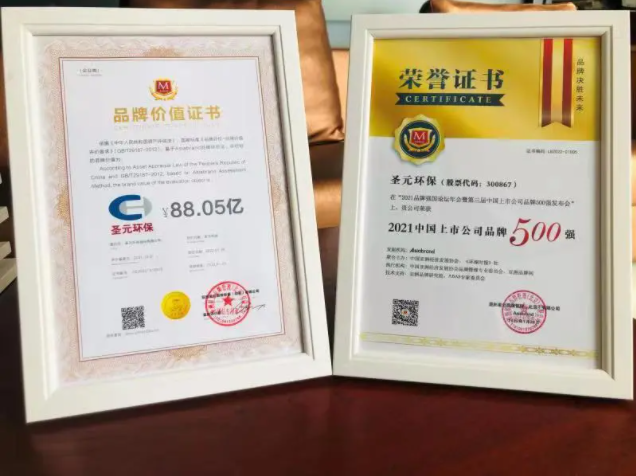2022年1月26日,2021品牌強國論壇年會暨第三屆中國上市公司企業500強榜單在上海隆重發布。聖元環保攬獲“2021中國上市公司品牌500強”和“2021中國上市公司最具投資價值品牌”雙項大獎。