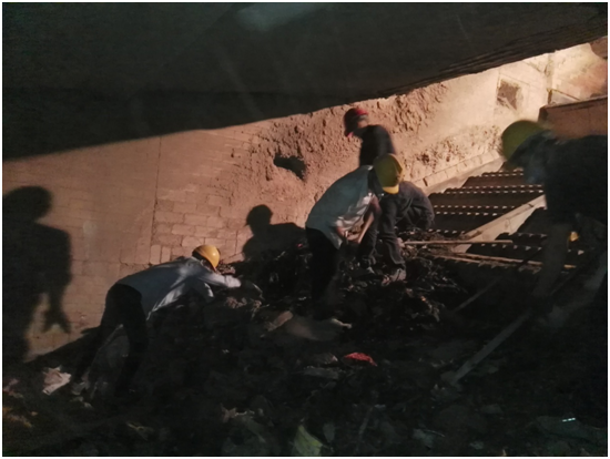 圖為檢修人員在清理爐排及疏通風眼