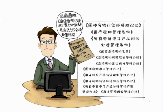 我國圍繞《固體廢物汙染環境防治法》,先後出台了《醫療廢物管理條例》《危險廢物經營許可證管理辦法》《廢棄電器電子產品回收處理管理條例》等3項法規和《國家危險廢物名錄》《危險廢物轉移聯單管理辦法》《危險廢物出口核準管理辦法》《固體廢物進口管理辦法》《電子信息產品汙染控製管理辦法》《電子廢物汙染環境防治管理辦法》《廢棄電器電子產品處理資格許可管理辦法》《再生資源回收管理辦法》等多項部門規章。