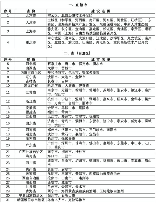 此外,雄安新區、蘭州新區、光澤縣、蘭考縣、昌江黎族自治縣、大理市、神木市、博樂市等8個特殊地區參照“無廢城市”建設要求一並推進。