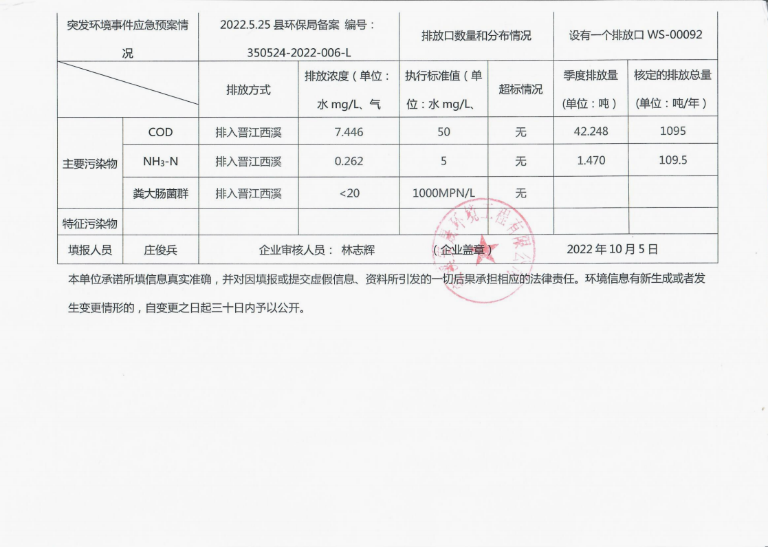 安溪城市汙水處理廠2022年第3季度環境信息公開