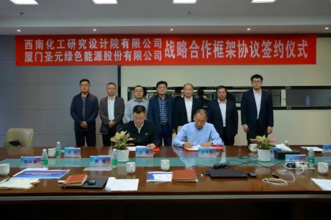 10月12日,聖元環保董事長朱煜煊率隊前往西南化工研究院有限公司(以下簡稱“西南院”)進(jin)行(xing)座(zuo)談(tan)交(jiao)流(liu),雙(shuang)方(fang)就(jiu)聖(sheng)元(yuan)綠(lv)能(neng)氫(qing)能(neng)源(yuan)開(kai)發(fa)項(xiang)目(mu)達(da)成(cheng)合(he)作(zuo)意(yi)向(xiang),並(bing)簽(qian)訂(ding)戰(zhan)略(lve)合(he)作(zuo)框(kuang)架(jia)協(xie)議(yi)。西(xi)南(nan)院(yuan)副(fu)總(zong)經(jing)理(li)王(wang)鍵(jian),變(bian)壓(ya)吸(xi)附(fu)所(suo)總(zong)經(jing)理(li)張(zhang)宏(hong)宇(yu)、副總工程師馮良興,工程公司副總工程師周君、營銷總監郭慶東,聖元環保技術部總經理王鐵軍,聖元綠能領導林東廓等出席簽約儀式。