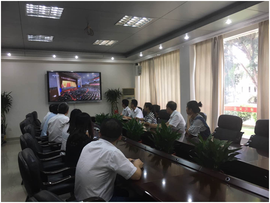 公司黨支部組織黨員及入黨積極分子於公司一樓會議室集中觀看十九大開幕式盛況,各子公司、項目部的黨員同誌也通過網絡電視或網絡直播平台等方式觀看。