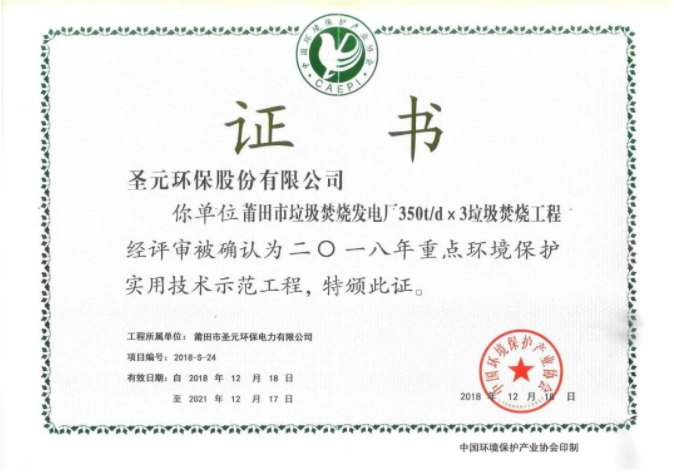 1月11日,中國建築業協會公布2022-2023年度第一批中國建設工程魯班獎(國家優質工程)入選名單,聖元環保莆田市生活垃圾焚燒發電廠三期擴建項目榮獲中國建築行業工程質量最高榮譽——中國建設工程魯班獎(國家優質工程)。
