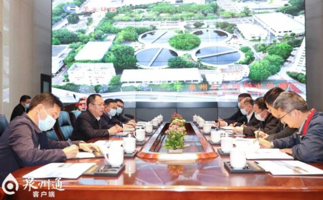 泉州市寶洲汙水處理廠是改善生產生活環境的民生工程,在防止水環境汙染、tishengzhongxinshiqushengtaihuanjingzhilianghewanchengwuranwujianpairenwuzhongfahuizhezhongyaozuoyong。zhangyigongshujixianchangchakanbaozhouwushuichulichangyunxingqingkuang,tingquzhuyuxuandongshichang、林文峰副總經理關於聖元環保在泉企業概況、寶洲汙水處理廠運行情況的彙報。張毅恭書記對汙水處理工藝流程、汙染物排放達標情況、配套管網建設情況進行詳細了解,並關心聖元環保在泉港氫能源項目的建設及發展情況。