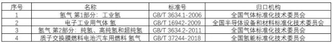 針對不同的氫氣製備方法和應用行業要求,國內外不同標準化機構製定了相應的氫氣品質標準,國內主要的相關規範如下表。