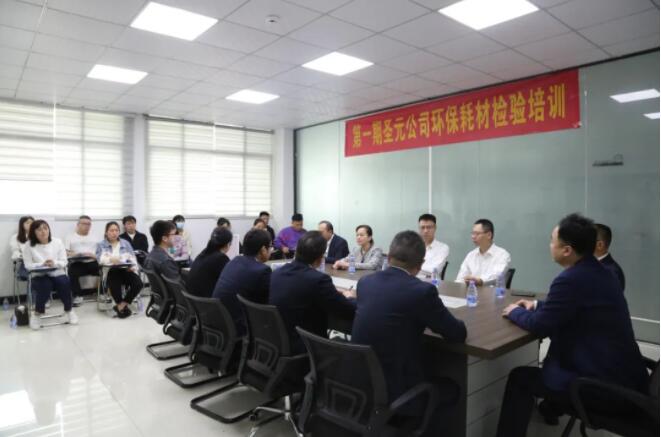 4月12日上午,聖元環保第一期環保耗材檢驗培訓班在福建省群策環境檢測有限公司正式開班。聖元環保副總經理汪雲保、運行保障部總經理張濤等出席開班儀式。