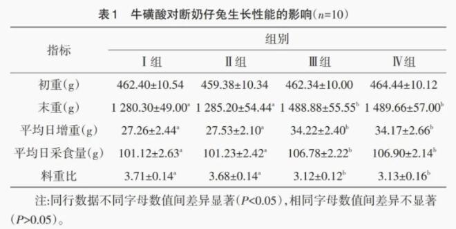 2.1 牛磺酸對斷奶仔兔生長性能的影響