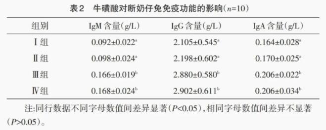 2.2 牛磺酸對斷奶仔兔免疫功能的影響