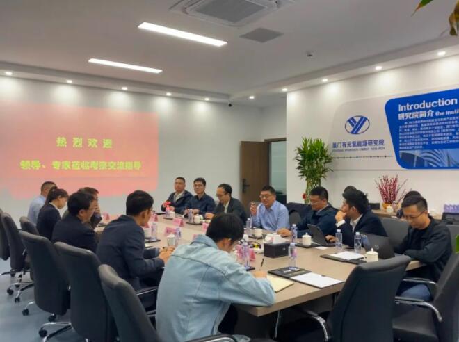 11月30日上午,廈門市工信局鄧建華副局長帶領中國科學院海西研究院廈門稀土材料研究所、廈門廈鎢氫能科技有限公司、林德(中國)叉車有限公司、廈門金龍聯合汽車工業有限公司四家企業的領導和專家蒞臨聖元(廈門)氫能源研究院考察交流。聖元環保董事、副總經理陳文鈺攜氫能研究院院長劉運權、副院長馬兆偉、馬吉梅等熱情接待。