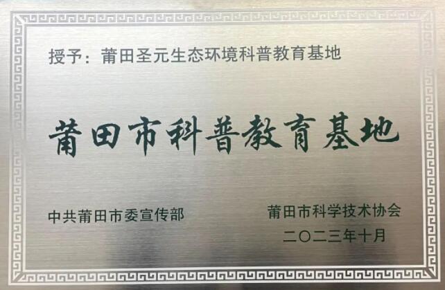 近日,中共莆田市委宣傳部、莆田市科學技術協會聯合授予莆田聖元生態環境科普教育基地“莆田市科普教育基地”稱號。