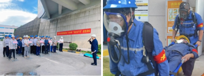 為貫徹落實6月全國“安全生產月”活動要求,6月25日,泉州聖元精心策劃開展了以檢修人員在滲濾液廊道清淤作業時發生中毒暈倒為背景的應急演練。
