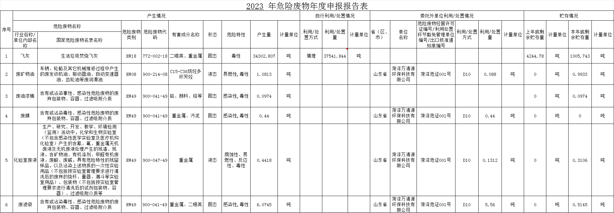 鄆城聖元危廢信息公示