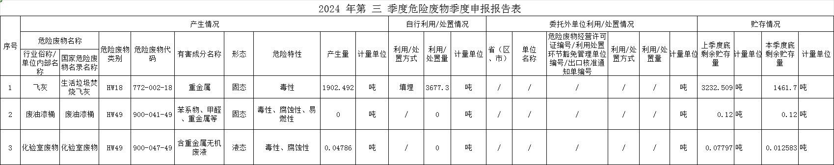 鄄城聖元第三季度危險廢物汙染防治信息公示