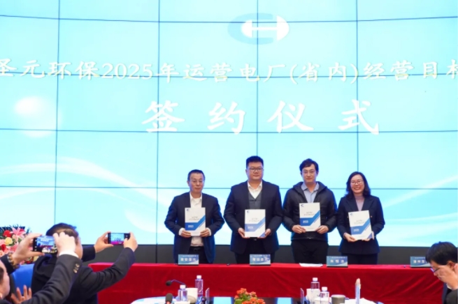 簽約儀式環節,朱恒冰總經理分別與運營電廠、運營水廠領導班子簽訂2025年度經營目標責任書。這一紙“軍令狀”,承載著沉甸甸的責任和使命,是對各責任主體新年工作的期望和要求,也是對公司未來發展的堅定承諾。