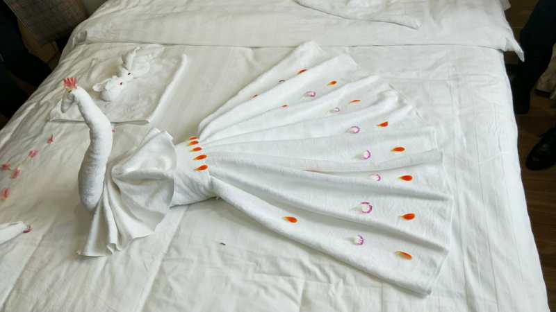 特別值得一提的是,老師還向學員們教授了標準化的酒店客房整理知識,一隻隻由毛巾疊成的小兔子、大孔雀散發出濃濃的溫馨和暖意。