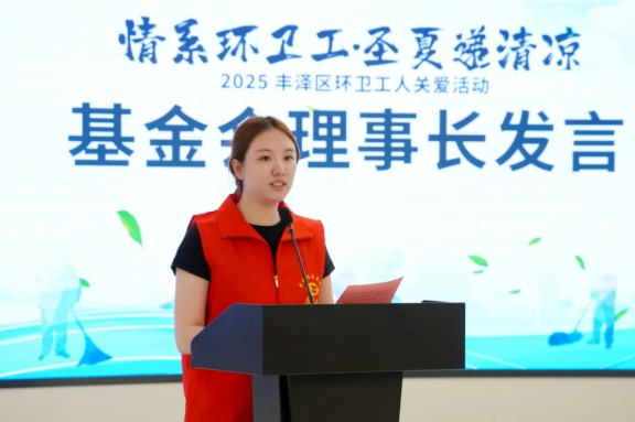 廈門市聖元慈善基金會理事長吳晶晶在發言中表示,公益不是單方麵的給予,而是雙向的溫暖。環衛工人是真正的“城市美容師”,是值得我們所有人尊敬的“高溫英雄”。這場“聖”夏遞清涼活動,為奮戰在高溫一線的2000名豐澤區環衛工人送上“聖元樹清涼能量包”,傳遞來自基金會、聖元環保的關愛與尊重。