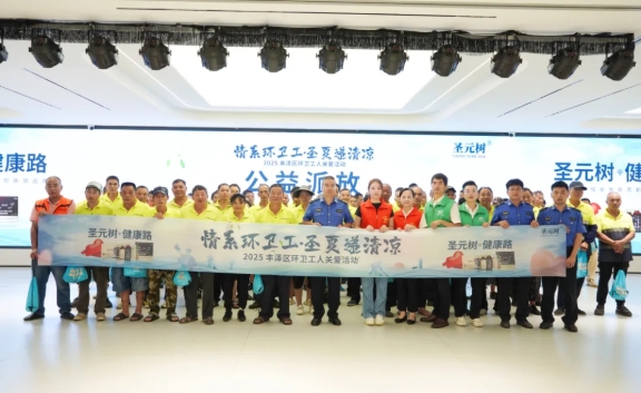 一份清涼包,承載著政企對勞動者的深切關懷;一個月補給,彰顯著聖元環保“泉心守護”的可持續擔當。當牛磺酸的能量注入疲憊的身軀,當冰袖為曬紅的雙臂帶來蔭涼,這份夏日裏的“聖”情厚意,正化為豐澤街頭最動人的文明風景。