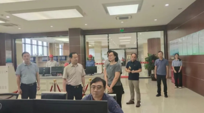 宋攀副縣長一行參觀一樓宣導大廳、中央控製室、參觀走廊通道,深入了解公司概況及設備實時運行、垃圾焚燒發電工藝、焚燒排放、五廢處理等情況。