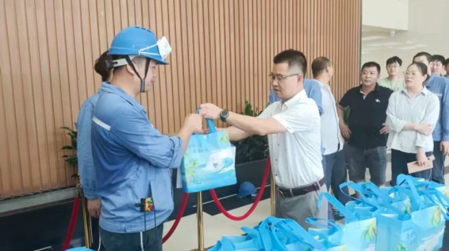安徽聖元為一線員工提供各種防暑降溫措施,通過配備防暑藥品、每天送鹽汽水、綠豆湯等,為一線員工築起“清涼防線”。這些堅守在高溫下的身影,用責任與擔當詮釋著勞動之美,為城市發展與民生保障注入了堅實力量。