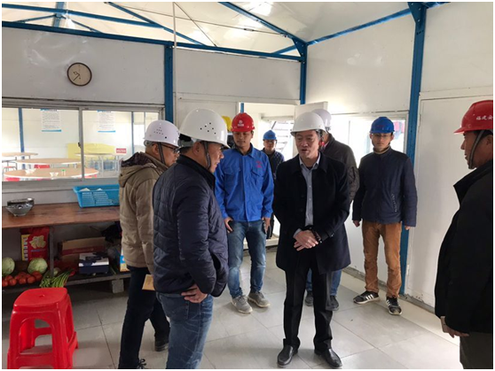朱煜煊董事長尤其關心駐地工人的飲食生活狀況,參觀食堂設施並檢查了食堂衛生,一再囑咐廚師們把食品安全工作做好。